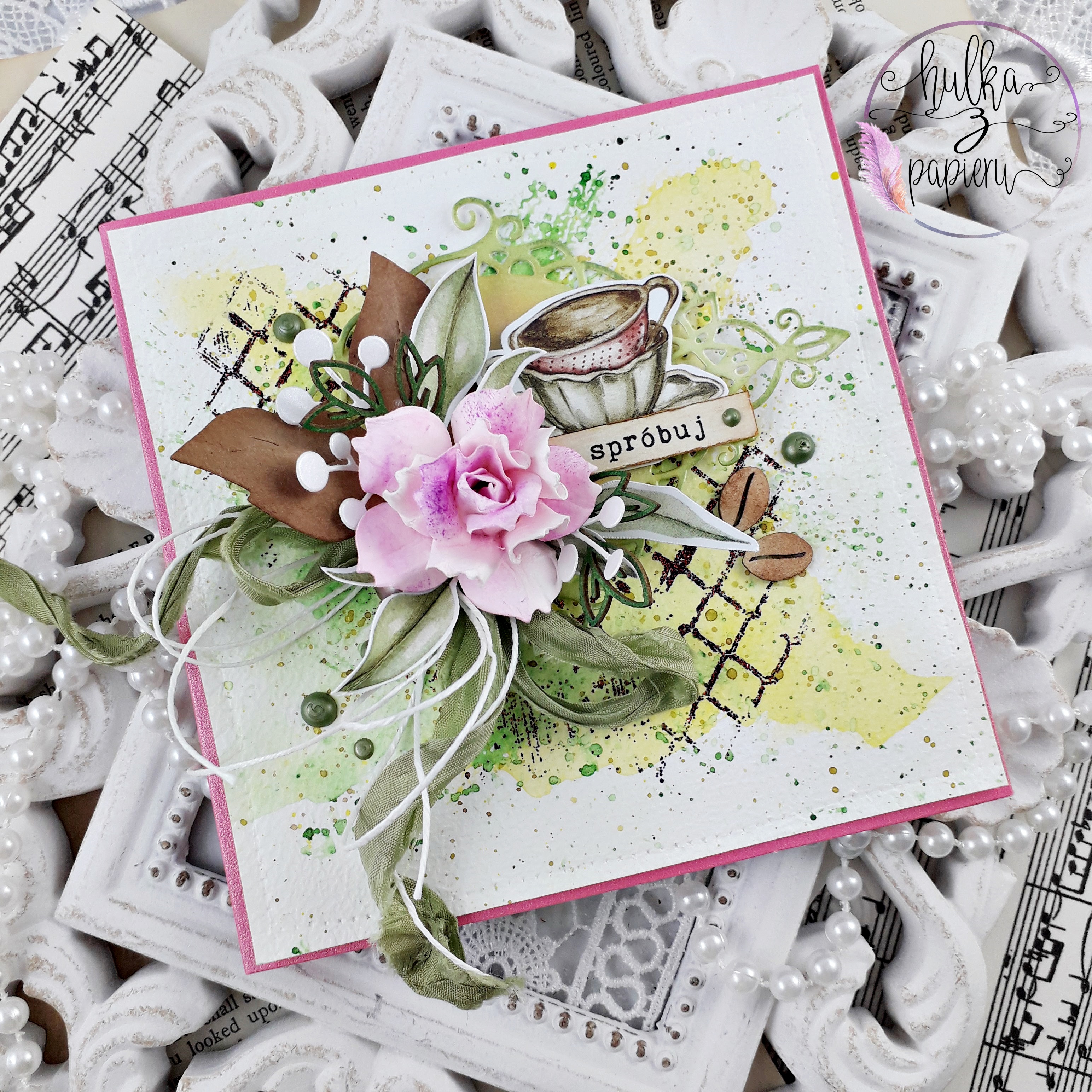 Jakiś czas temu miałam ogromną przyjemność wygrać w wyzwaniu z moodbordem na blogu sklepu Craft4You. Dziś - w ramach części nagrody - cieszy mnie możliwość zaprezentowania mojej interpretacji moodbordu wyzwaniowego na maj. Jest niezwykle ciekawy i inspirujący. Sugerując się kolorami oraz niektórymi elementami tablicy wykonałam taką oto kartkę okolicznościową z mediowanym tłem.